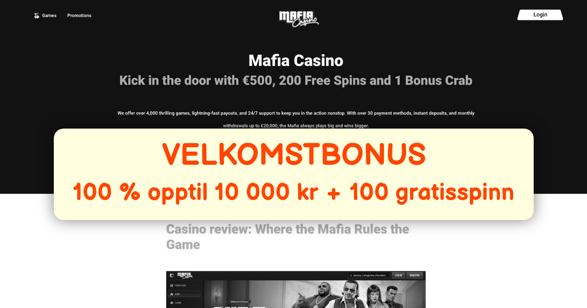 Bonuser har ofte velkomstpakker, gratisspinn og cashback. Hos enkelte aktører som Mafia Casino kan pakker gå opptil 150 000 kr + 350 freespins over flere innskudd, med typisk 50x omsetning, maksinnsats og maksgevinst på bonus (f.eks. 10 000 kr). Cashback kan være rundt 15 % med omsetningskrav.